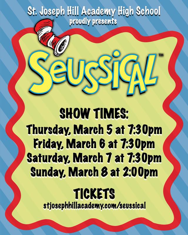 Tickets are now on sale for Hill Drama Club's production of Seussical this March! Shows are March 5-8th! We hope you will consider supporting the Drama Club by purchasing a playbill ad as well. And, for everyone attending with children, we have a special pre-show event on Sunday 3/8 to celebrate Dr. Seuss's birthday!